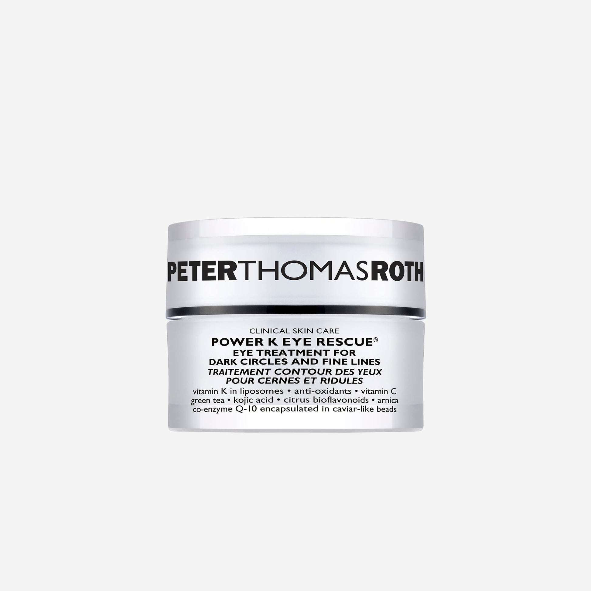 Helps visibly brighten and reduce the look of dark circles, puffiness, crepiness, fatigue, fine lines and wrinkles in the delicate eye area. Helps combat the look of darkening and other signs of aging with a unique, refreshing formula. Actives include Vitamin K in Liposomes, Anti-oxidants, Vitamin C, Green Tea, Kojic Acid, Citrus Bioflavonoids, Arnica, and Co-Enzyme Q-10 encapsulated in caviar-like beads that burst onto the skin.